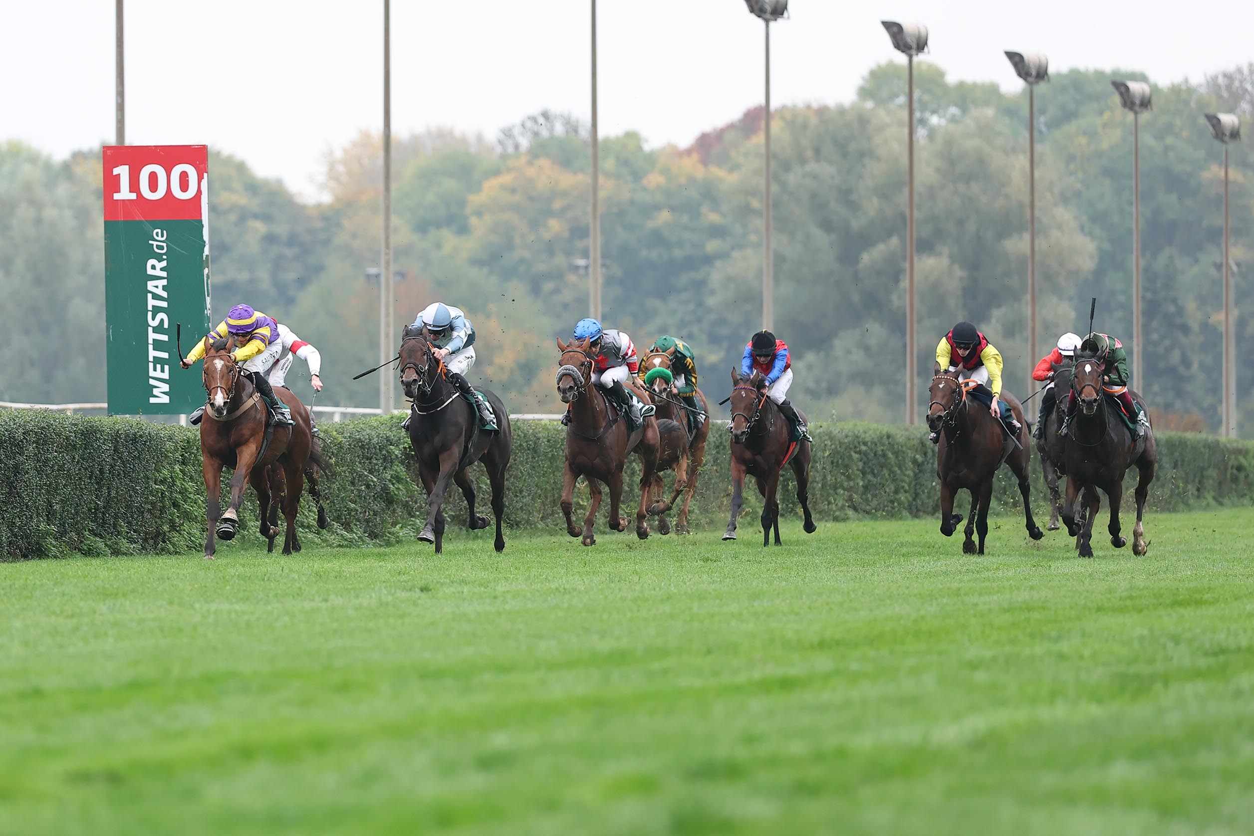 Shinning Yellow im Besitz des Stall Golden Horse Racing, war am heutigen Samstag die einzige Starterin in Dortmund. Im abschließenden Ausgleich II, konnte die frische Siegerin jedoch ihrer mit 2,5:1 deutlichen Favoritenstellung nicht gerecht werden und kam unter Michael Cadeddu nach 1.800 Metern nur als Letzte über die Linie.