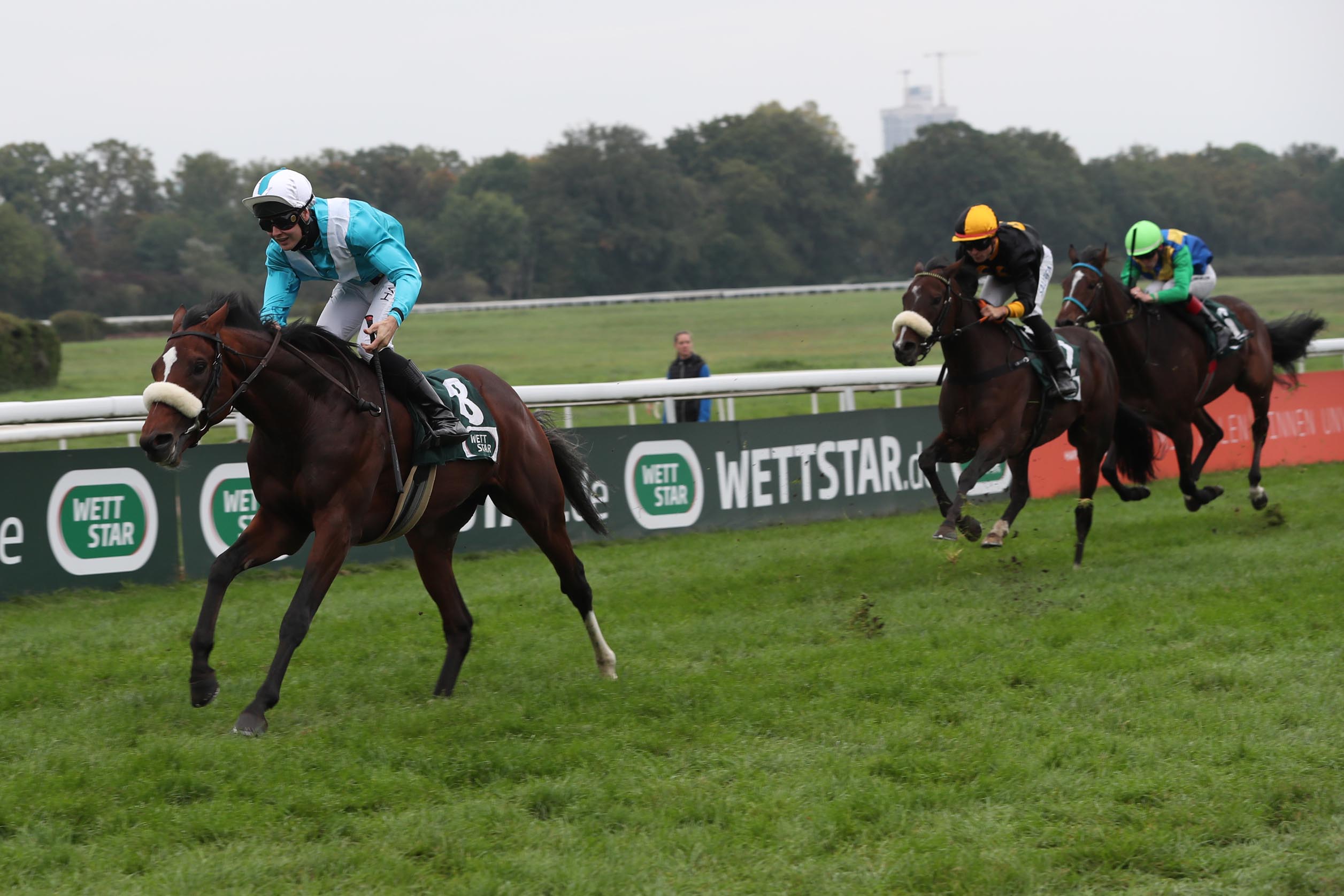 Da blieb das Quartier beim Renntag am heutigen Sonntag auf der Kölner Heimstbahn also tatsächlich doch sieglos. Im Ausgleich II über 2.200 Meter zeigte die im Besitz des Stall Route 66 und Partner 3.0 stehende Hope and Believe bei ihrem Debut im Handicap zwar eine starke Leistung, traf jedoch in Person von Niclas auf einen an diesem Tag überlegenen Sieger, der sich mit vier Längen Vorsprung durchsetzte.  Für Trainer Henk Grewe war es nach True Lion  und Lommi der dritte Ehrenplatz an diesem Tage.