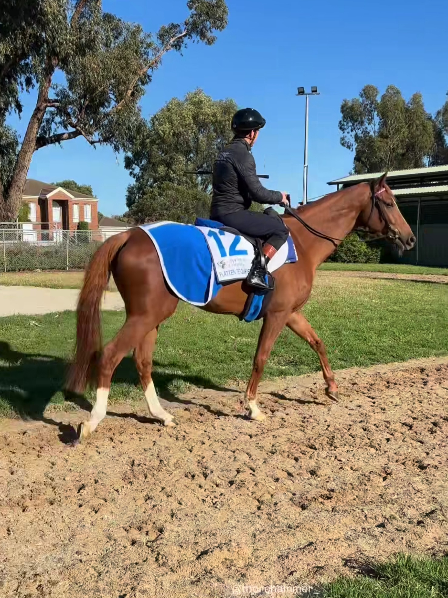 In den letzten beiden Wochen von seinem Begleiter Fabio Marcialis bestens betreut, ist jetzt auch Jockey Thore Hammer Hansen vor Ort angekommen, der mit dem Zarak – Sohn am heutigen Dienstag auch den finalen Grasbahn – Galopp absolvierte und sich anschließend sehr zufrieden mit seinem relaxten Partner und dessen guten Arbeit zeigte.