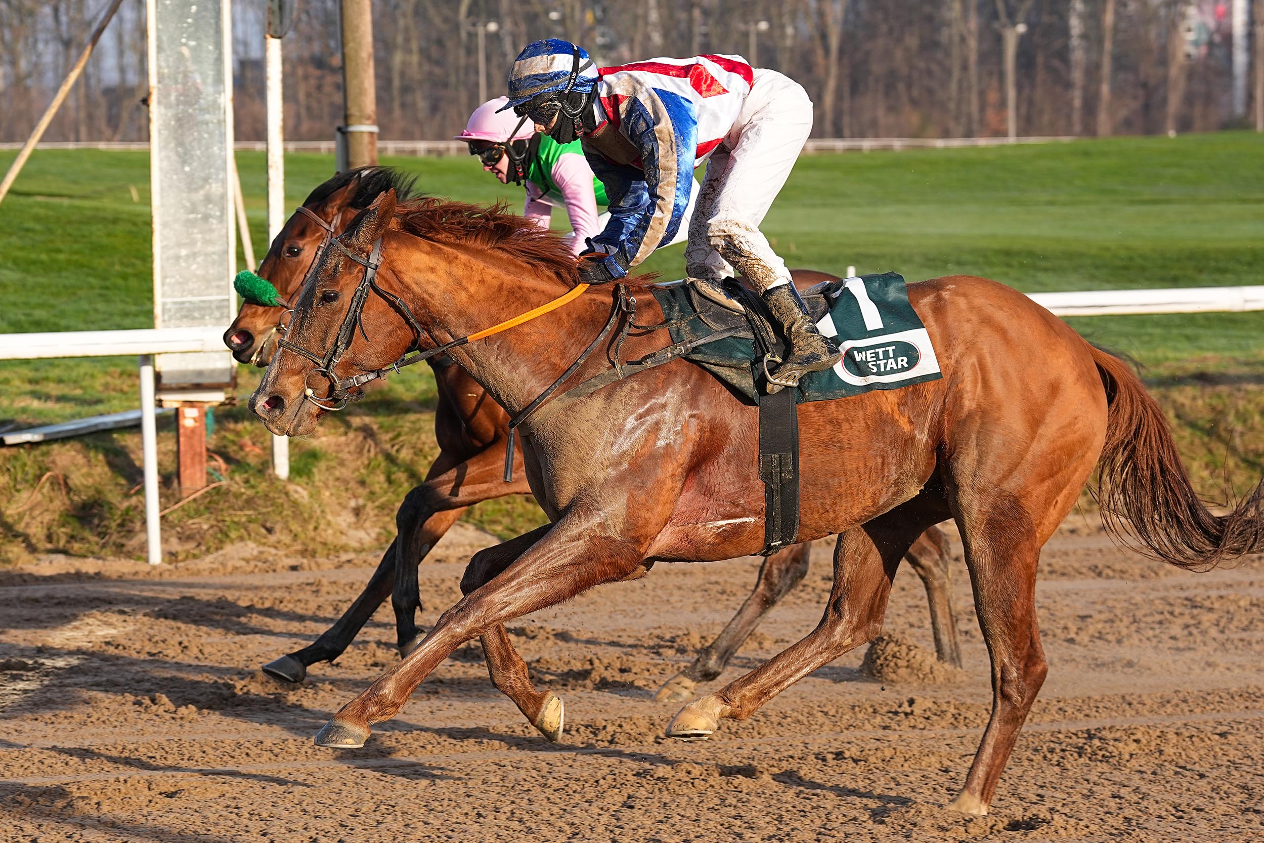 Auch nach dem Renntag am heutigen Sonntag in Dortmund muß Trainer Henk Grewehr erst einmal noch weiter auf den ersten Sieg hierzulande warten. Seine einzige Starterin Neyshapur zeigte zwar trotz 162-tätiger Pause und eines etwas aufwendigen Rennverlaufs die erwartet gute Leistung, mußte sich aber letztlich unter Leon Wolff nach 1.700 Metern und Kampf mit Platz Zwei zufrieden geben. In einer Maidenprüfung für vierjährige und ältere auf Sand sieglose Pferde, sah die im Besitz von Darius Racing stehende Stute zwar schon wie die Siegerin auy, ehe sie kurz vor der Linie doch noch von der 21,0:1 Außenseiterin Zeraphina mit einem Hals abgefangen wurde.