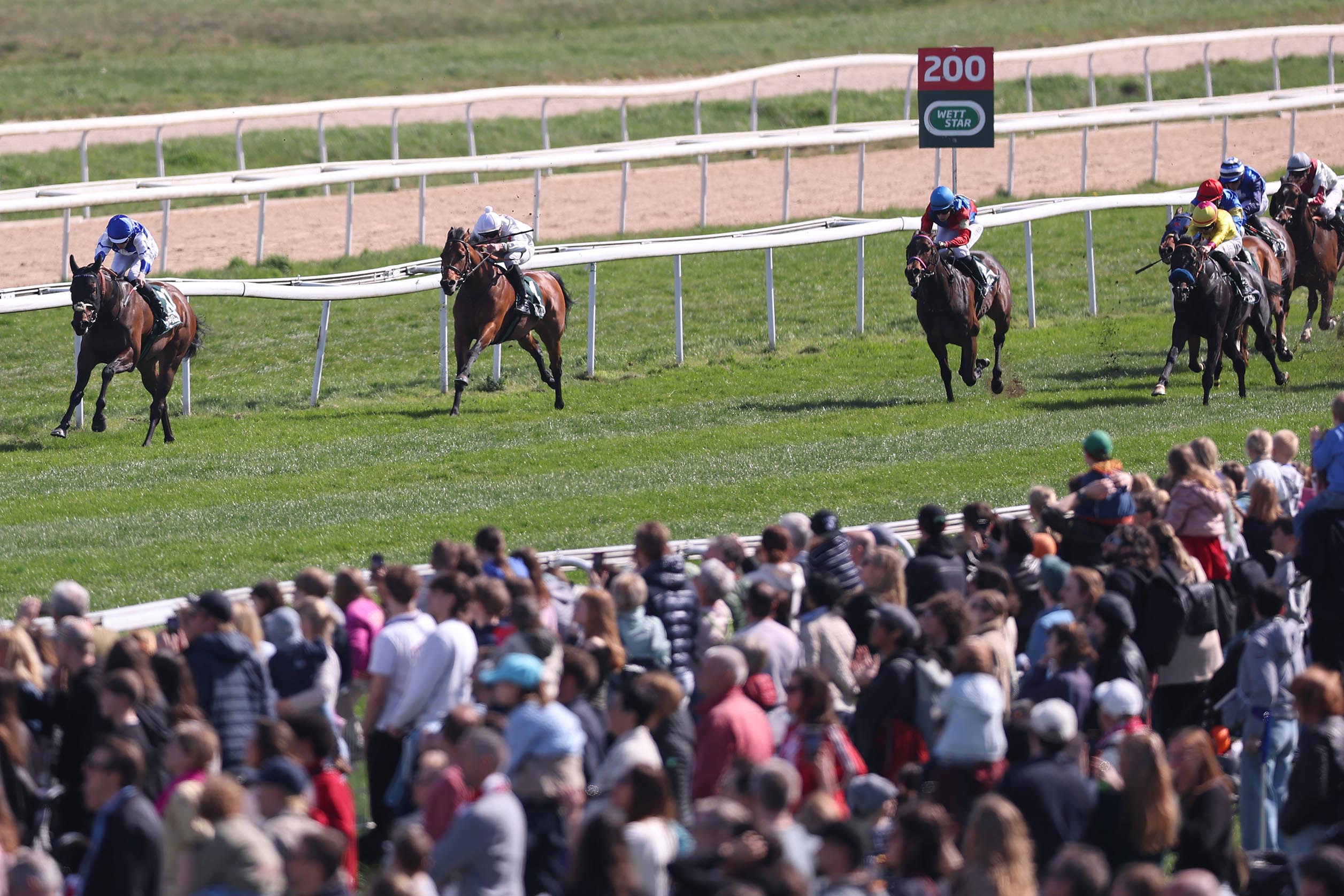 Nach seinem heutigen ersten Versuch auf diesem Niveau im MERKUR SPIELBANKEN CUP – Weidenpescher Sprint auf der Kölner Heimatbahn, sollte ihm dies wohl auch gelingen. Denn unter Thore Hammer – Hansen kam der jetzt Fünfjährige ungeachtet einer rund 200- tägigen Pause nach 1.300 Metern hinter dem aus Frankreich angereisten Überraschungssieger Victory Call, sowie den mitfavorisierten Dino und War Bride als Vierter über die Linie. Wobei er nach einem Rennen im Vordertreffen und guter Schlußattacke letztlich nur um eine dreiviertel Länge an seinem ersten “black – type” vorbei schrammte. Aufgeschoben ist nicht aufgehoben, sollte bei ihm nach dieser Vorstellung das Motto auf den bevorzugten Distanzen von 1.300 Metern bis zur Meile lauten.