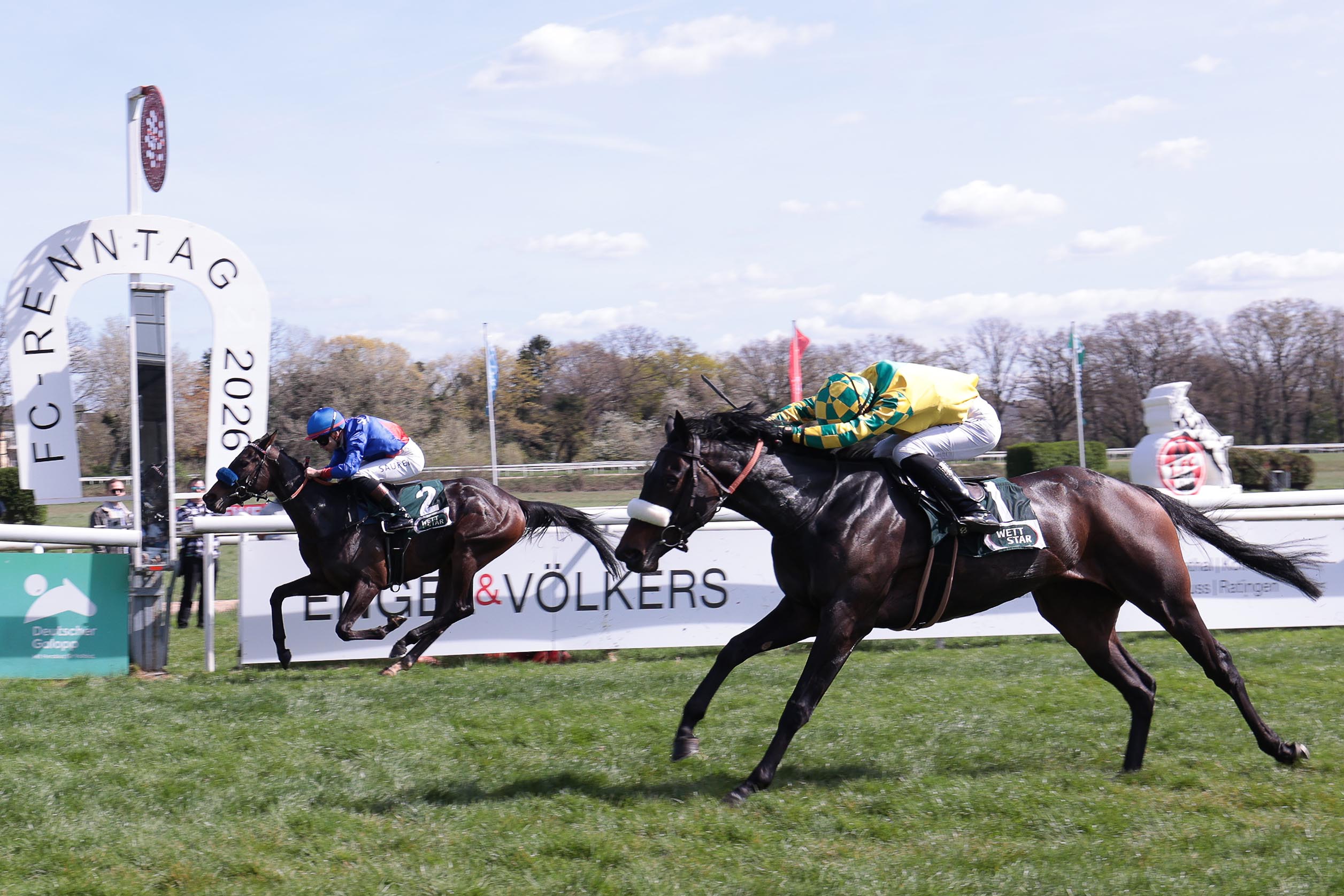 “Pferderennen sind wie ein Königsberger Klops, da ist einfach alles drin” pflegte Trainerlegende Heinz Jentzsch einst zu sagen wenn er vor einem Rennen nach den Chancen eines seiner startenden Favoriten gefragt wurde. Das er mit dieser zugegeben saloppen Weisheit ab und an auch richtig lag, mußte Henk Grewe am Ostermontag auf seiner Kölner Heimatbahn gleich im einleitenden Rennen erfahren. Denn eigentlich schien in einem von nur vier Pferden bestrittenen Stutenrennen alles angerichtet für einen Sieg seiner großen Diana Hoffnung Santa Catarina.