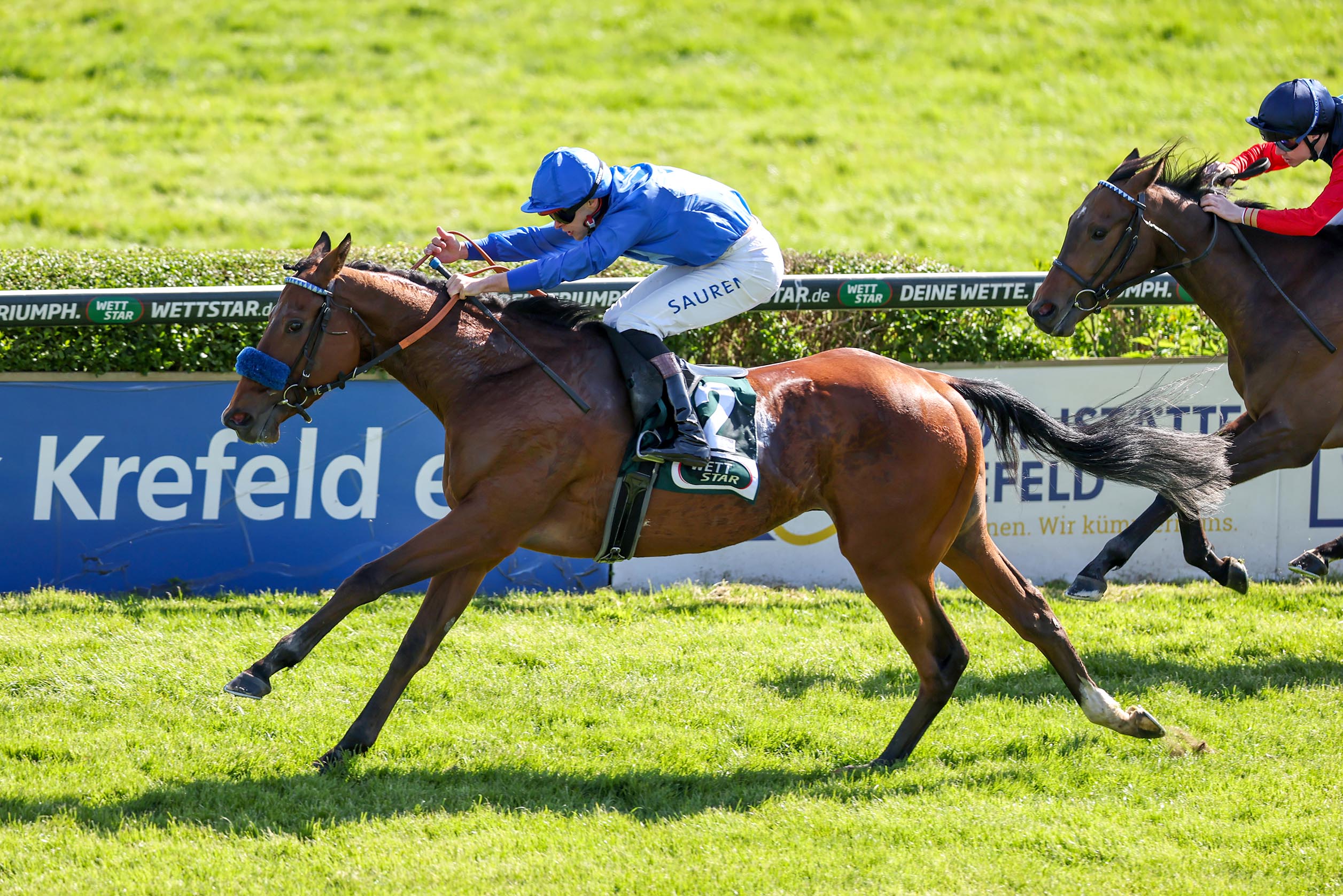 Den in Irland gezogenen Saxon Warrior – Sohn, ein 50.000 Euro Arqana Kauf der sich zweijährig noch schwer tat, möchte man in die German 2.000 Guineas bringen. Beim Debut Ende März in Düsseldorf sah er ungachtet eines schlechten Rennverlaufs jedenfalls gleich lange wie der Sieger aus, ehe er spät noch von der bereits mehrfach erprobten Außenseiterin Fine Bubbles überlaufen wurde.