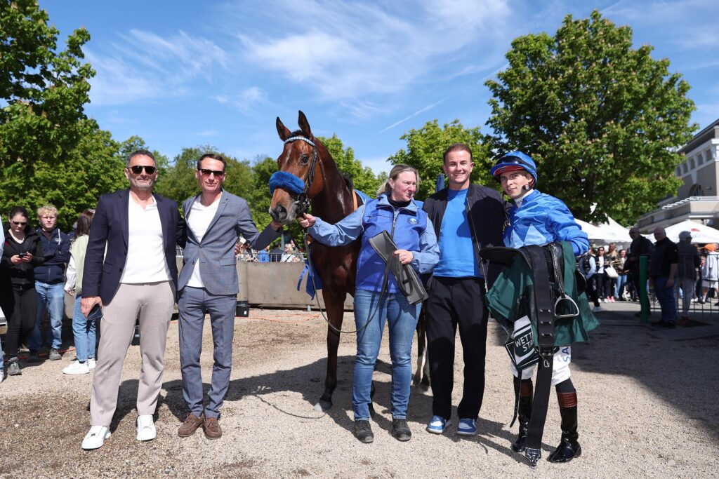 „Die German 2.000 Guineas sind das Ziel für ihn, aber eigentlich hätte er da heute schon leichter gewinnen müssen, um mit Mumm in das Rennen zu gehen. Zumal das Rennen auch nicht übermäßig stark besetzt war. Da die Bildschirme ausgefallen waren, muß ich das Rennen am Abend noch einmal genau studieren. Wir müssen auch mal sehen, ob er jetzt noch einen weiteren Sprung macht“, so der Trainer vor der Siegerehrung.